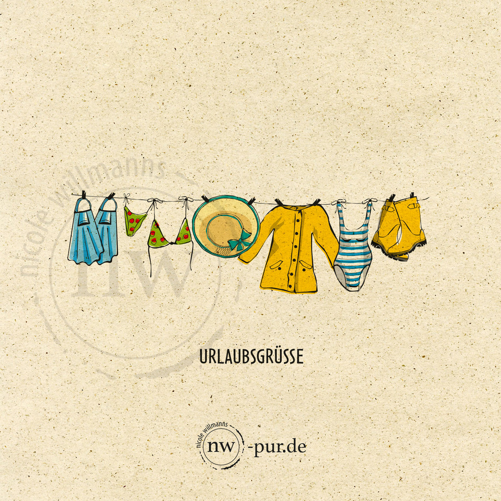 Postkarte "Urlaubsgrüsse", Wäscheleine