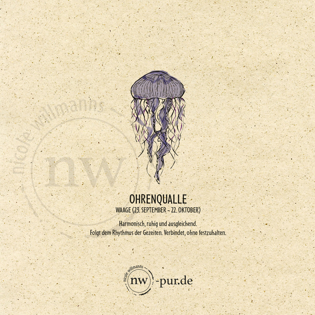Die Qualle schwebt ruhig durchs Wasser und folgt dem Rhythmus der Gezeiten. Sie steht für Balance, Harmonie und Ausgleich – ganz wie das Sternzeichen Waage.